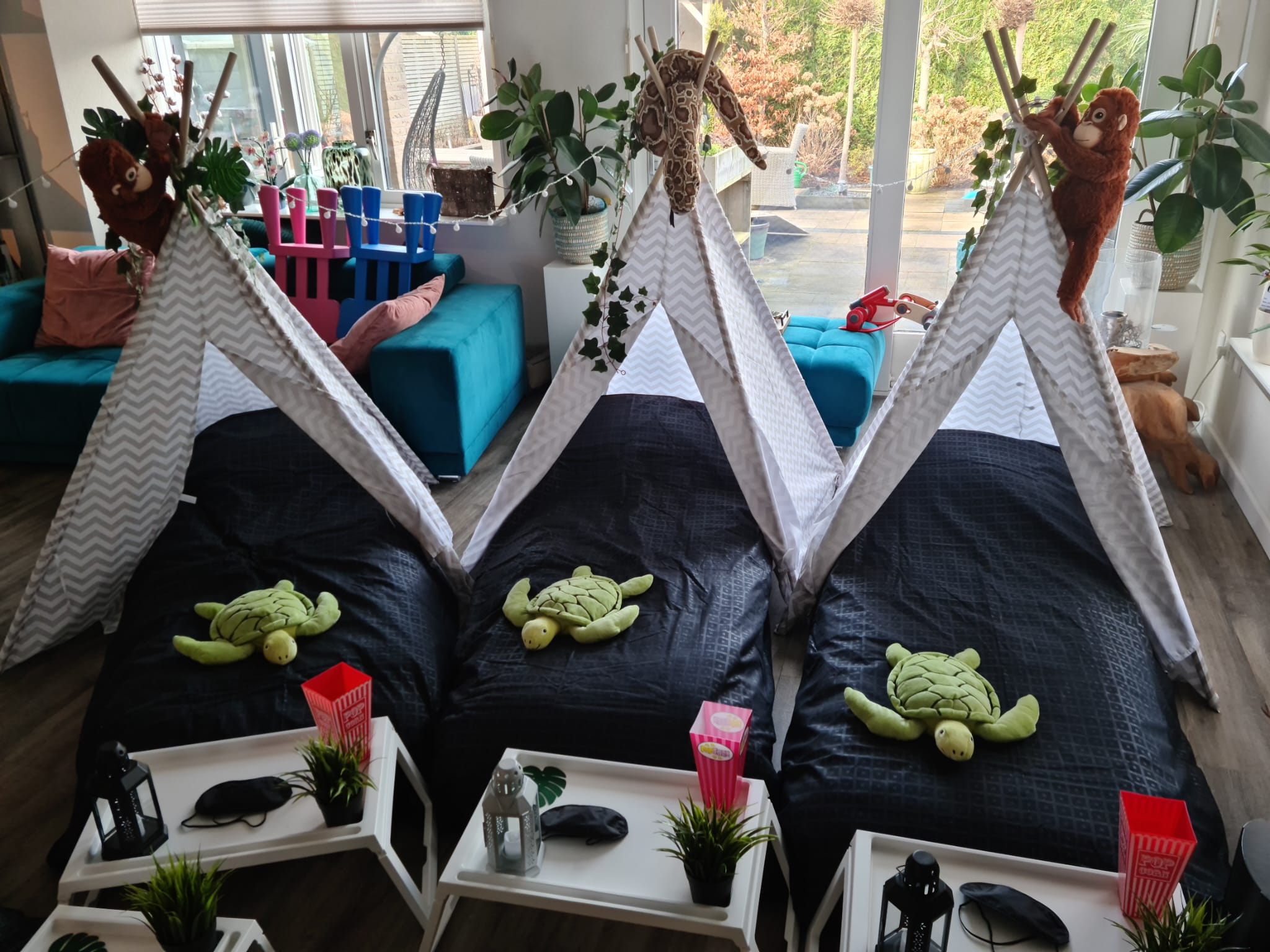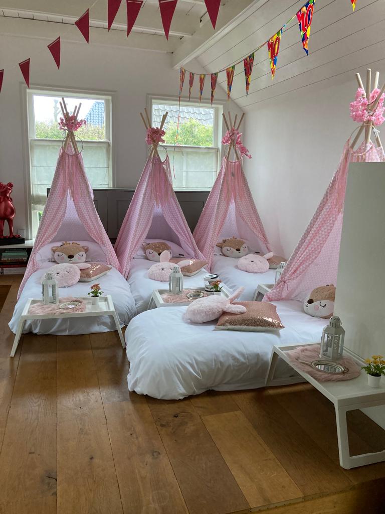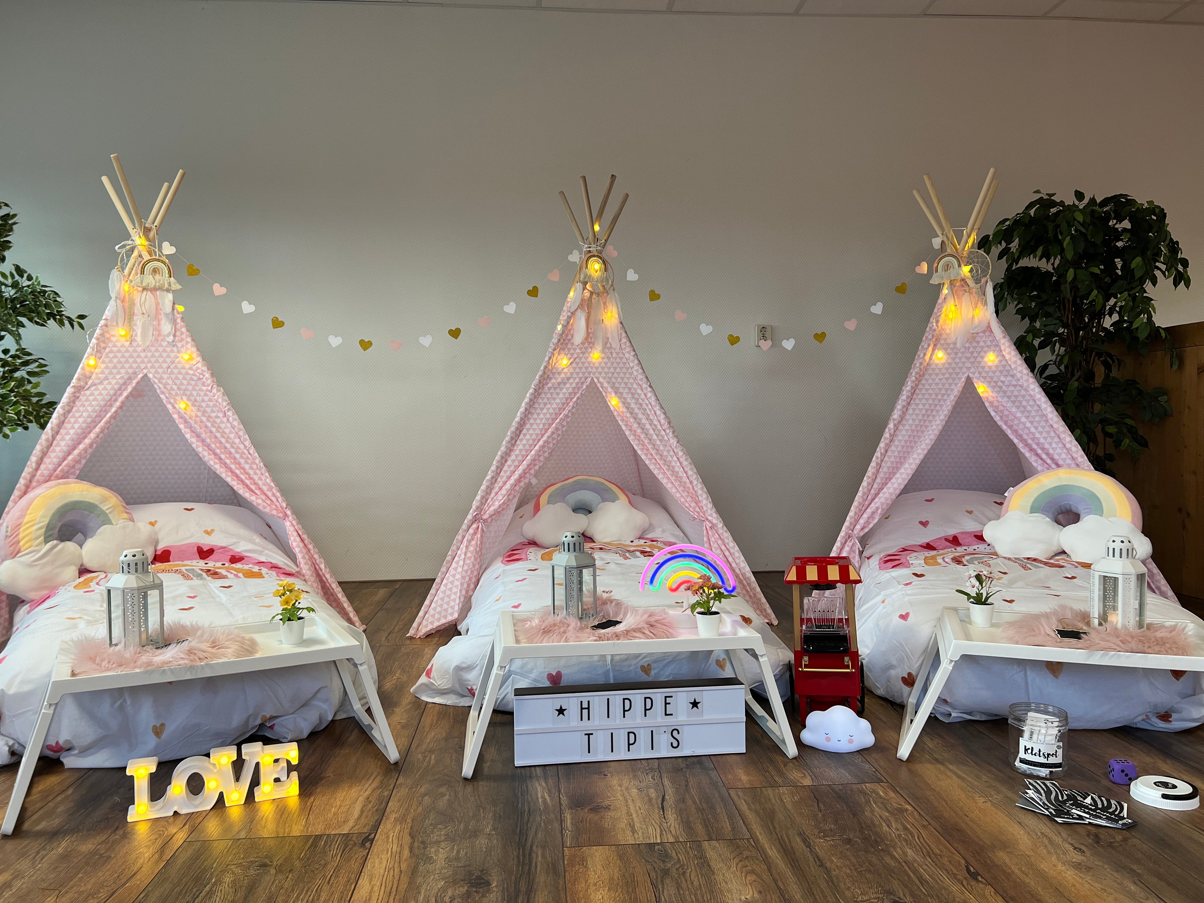Hippe Tipi’s biedt complete thema logeerpakketten aan, zodat jij je nergens meer druk over hoeft te maken. In deze pakketten zit werkelijk alles wat je nodig hebt om een slaapfeestje te kunnen geven. Van tipi tentjes tot slaapspullen, lampjes en bedtafeltjes - wij regelen het voor je. En het beste nieuws? De kinderen die komen hoeven alleen maar hun pyjama mee te nemen en een tandenborstel!